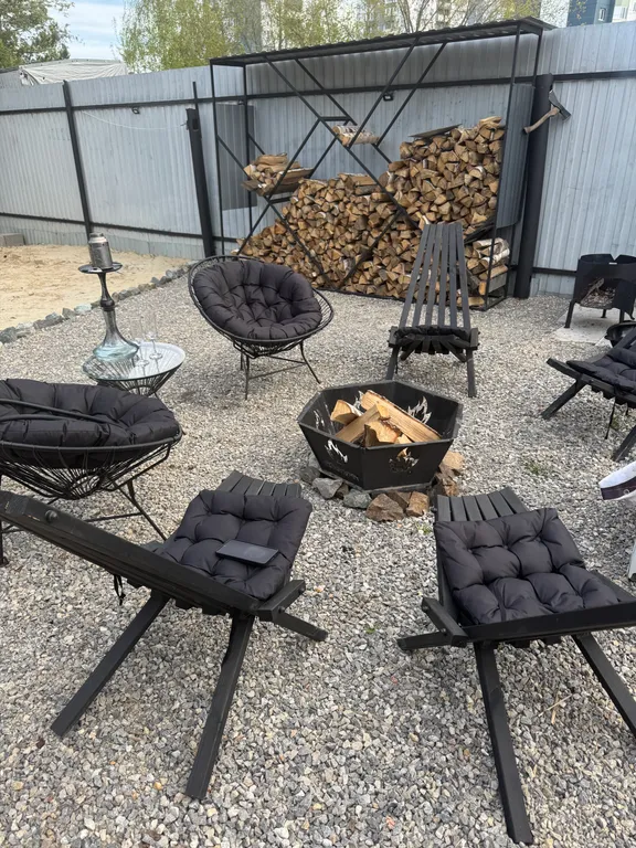 Мангальная зона под крышей (мангал/барбекю, 2 решетки, шампура 15, казан 16 л, весь нужный инвентарь для казана, перчатки, горелка).