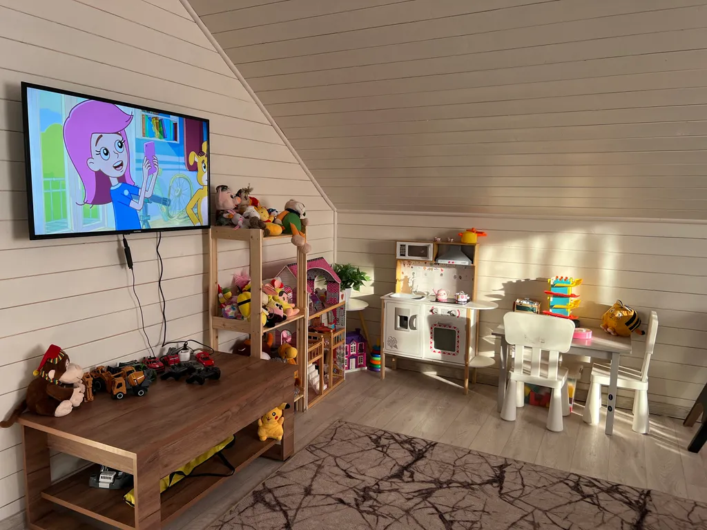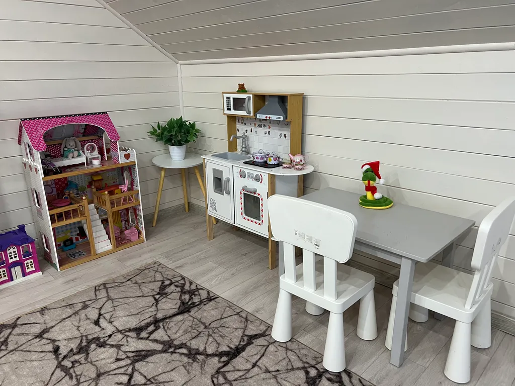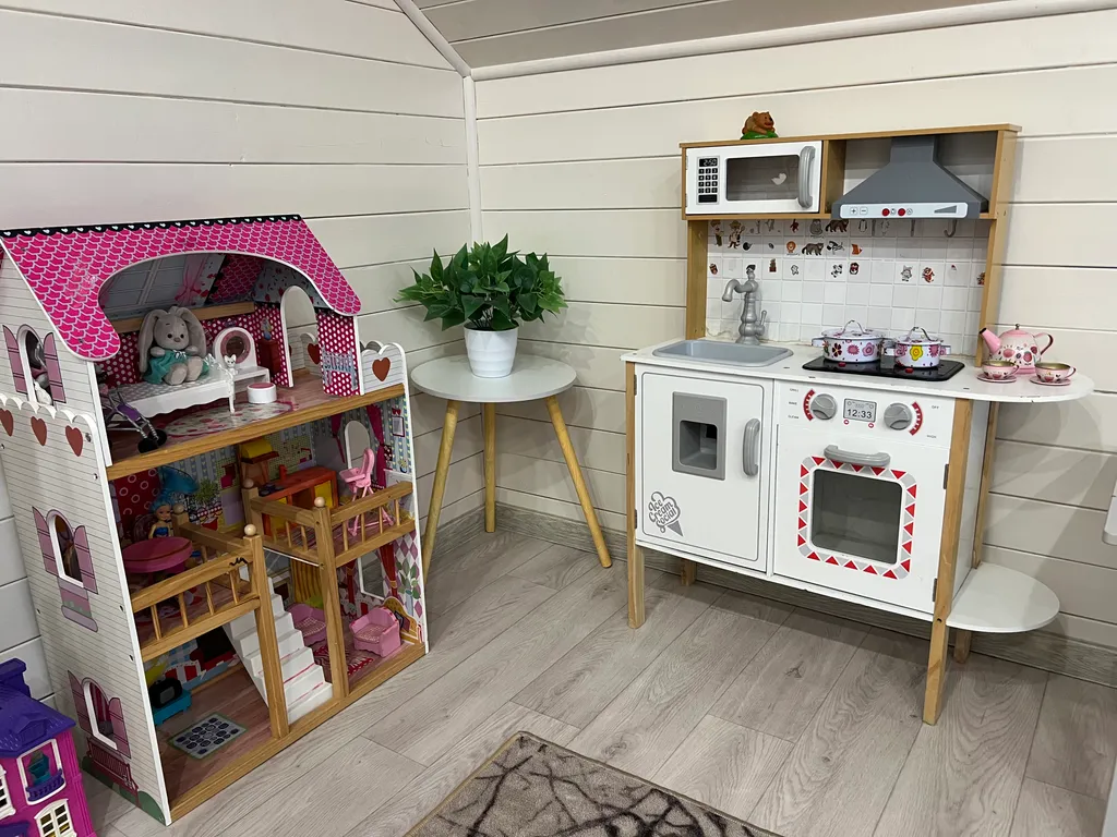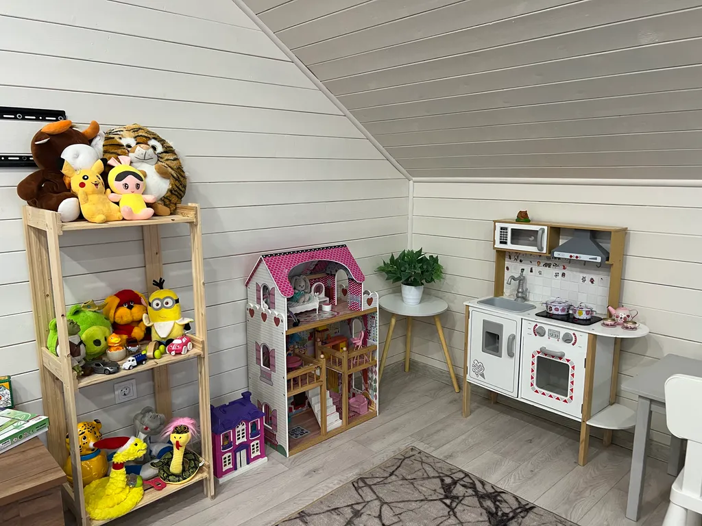 Детская игровая комната на втором этаже: кукольный домик, кухня, машинки, мягкие игрушки и многое другое ждет ваших детей.